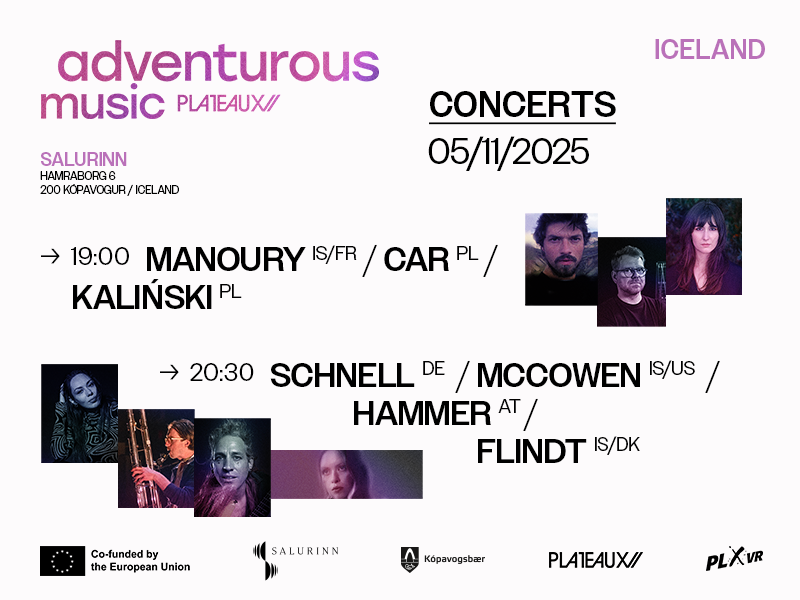 Join us for an exciting double-bill concert featuring a unique collaboration of Icelandic and European artists as part of the international project Adventurous Music Plateaux (AMP).