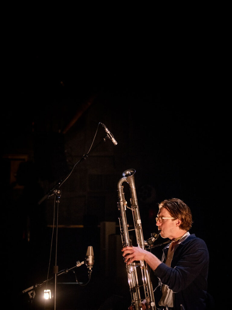 Tom Manoury samples and processes his saxophone in real time. With intuitive interfaces and controllers built onto the saxophone, Tom is developing a hybrid instrument allowing great performing freedom. Buttons, touch screens and motion sensors control highly elaborated and interactive processing units. Exploring the vast sound spectrum of this unique setup he creates.