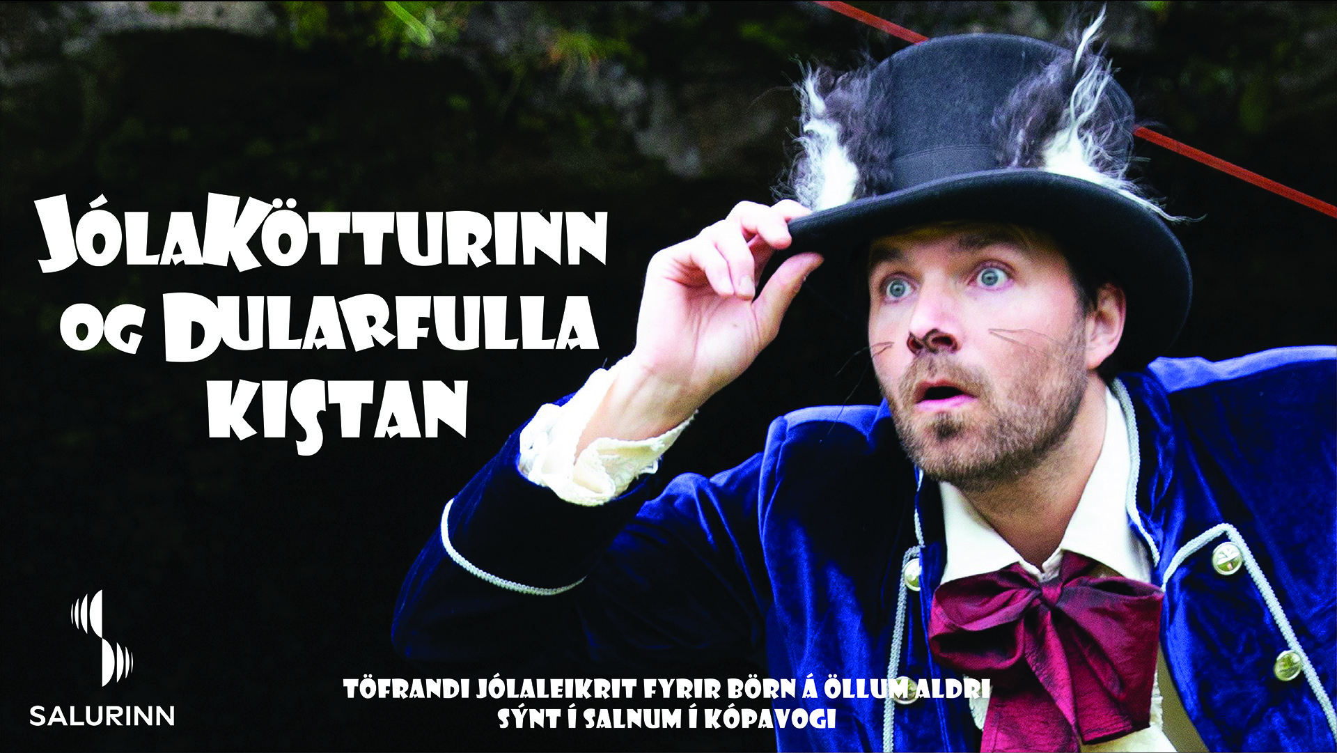 JÓLAKÖTTURINN & DULARFULLA KISTAN er litrík og töfrandi jólasýning fyrir alla fjölskylduna. Í þetta sinn rambar Jólakötturinn óvænt inn í Salinn í Kópavogi. Þvert á þjóðtrú kemur í ljós að hann er besta skinn, þó að hann sé smá prakkari.