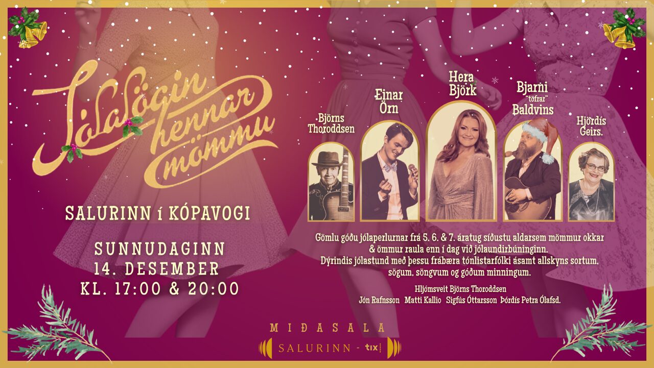 Hera Björk, Einar Örn, Bjarni “Töfrar” Baldvins & góðir gestir halda áfram að flytja okkur gömlu góðu lögin frá 5. 6. & 7. áratug síðustu aldar og nú er komið að jólalögunum sem lifa enn góðu lífi inni á heimilum landsmanna. Og áfram er það hljómsveit hússins undir stjórn meistara Björns Thoroddsen en hana skipa auk gítarmeistara Björns, Matti Kallio á píanó, Sigfús Óttarsson á Trommur, Jón Rafnsson á bassa og Þórdís Petra Ólafsdóttir í bakraddir & bjöllur eftir þörfum.